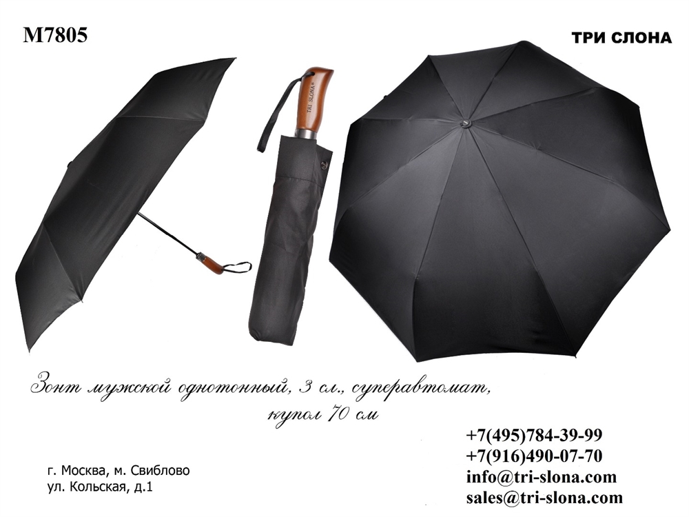 - Зонт ТРИ СЛОНА суперавтомат мужской 100% п/э (7805) -