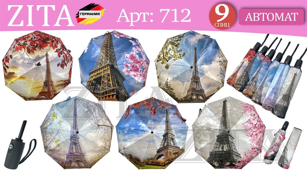 - Зонт ZITA автоматический женский 100% п/э (712) -