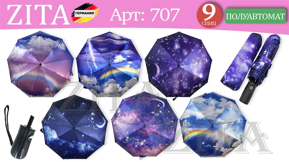 - Зонт ZITA п/автоматический женский 100% п/э (707) -